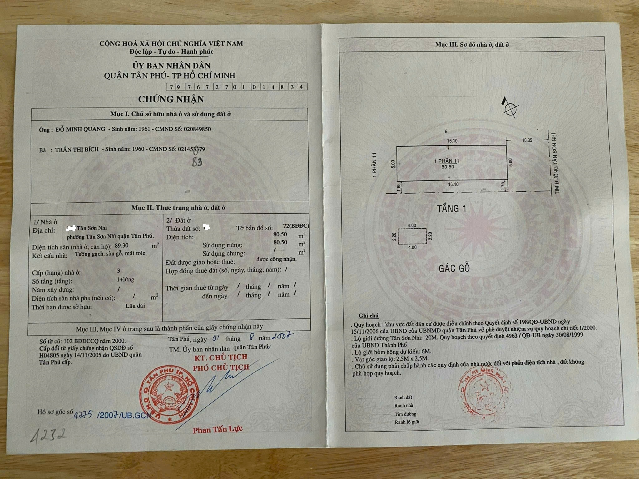 + Pháp lý: sổ hồng công nhận: 89.30m2