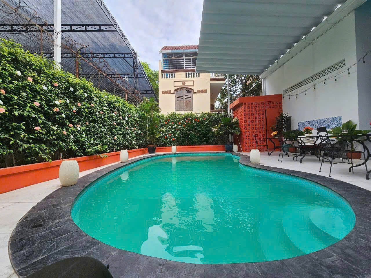 -Diện Tích: 16x35m (~500m²), hồ bơi, sân vườn.